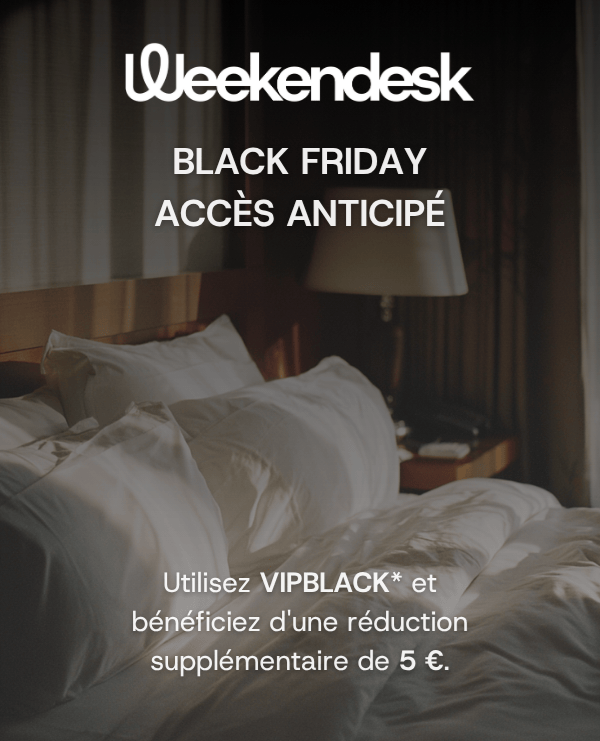 Utilisez VIPBLACK * aujourd'hui et demain pour obtenir 5 € de réduction supplémentaire sur n'importe quelle escapade pour vous ou pour anticiper vos cadeaux de Noël.